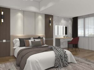 Design Concept: The Minimalist Elegance Two-tone Sliding Door Wardrobe is a testament to modern design principles, focusing on functionality wrapped in visual appeal. This wardrobe features a striking two-tone finish that offers a sleek, understated look while making a bold statement in any contemporary bedroom. Color Palette and Surface Treatment: This wardrobe combines neutral tones in a two-tone finish, providing a versatile palette that complements a wide range of bedroom decors. The surfaces are treated for durability and ease of maintenance, ensuring the wardrobe remains an integral part of your space for years to come.