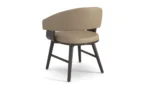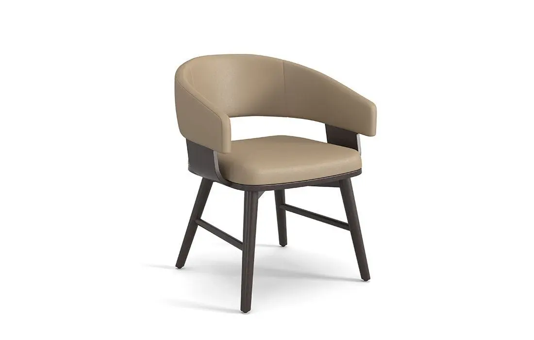 The Elliot Dining Chair combines timeless elegance with contemporary functionality, making it an excellent choice for upscale dining environments. Its clean, sleek design is enhanced by the use of self-welts and a tight seat, with upholstery covering both the inside and outside of the back and arms. The exposed wooden arm frame and seat shell, crafted from red beech wood and veneer, create a sophisticated yet natural look. This dining chair is designed for both durability and comfort, featuring solid wood 'X' seat bottom rails, legs, and side stretchers, all made from sturdy red beech. The construction is reinforced with S-spring and webbing for additional support, ensuring a comfortable seating experience over extended use. With options for customization of fabric and finishes, the Elliot Dining Chair offers flexibility to complement various design schemes. Whether used in a formal dining room or a more casual setting, this chair’s blend of high-quality craftsmanship and aesthetic appeal makes it a standout piece for any space.
